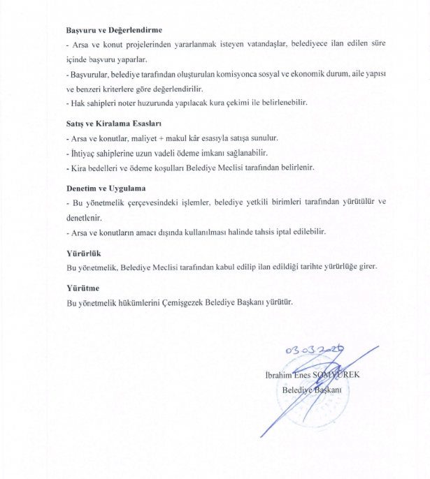 - Arsa ve konutların tahsisinde adil, şeffaf ve sosyal denge gözetilerek hareket edilir.
