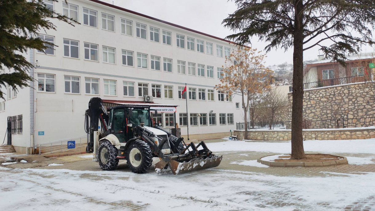 Belediye Başkanımız Sayın İbrahim Enes Somyürek'in talimatlarıyla öğrencilerimizin güvenliği için okul önleri ve güzergâhlarında yol açma ve tuzlama çalışmalarına hız verilmiştir.