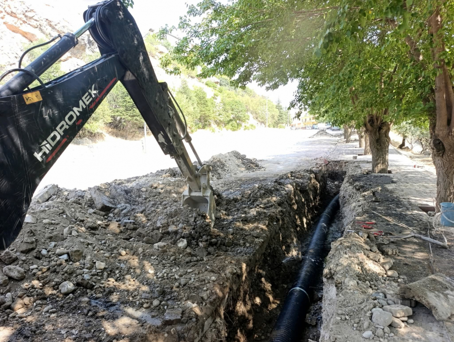 Belediye ekiplerimiz Kale Mahallesi Gedikler Caddesi üzerinde yıpranmış ve deforme olmuş kanalizasyon hattında yenileme çalışması yapıyor.